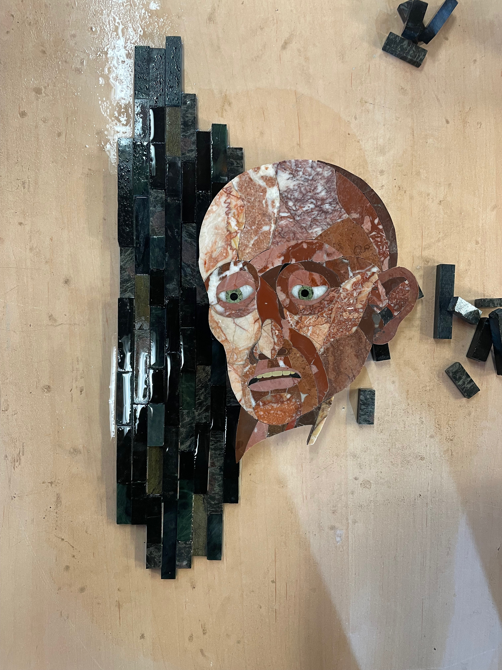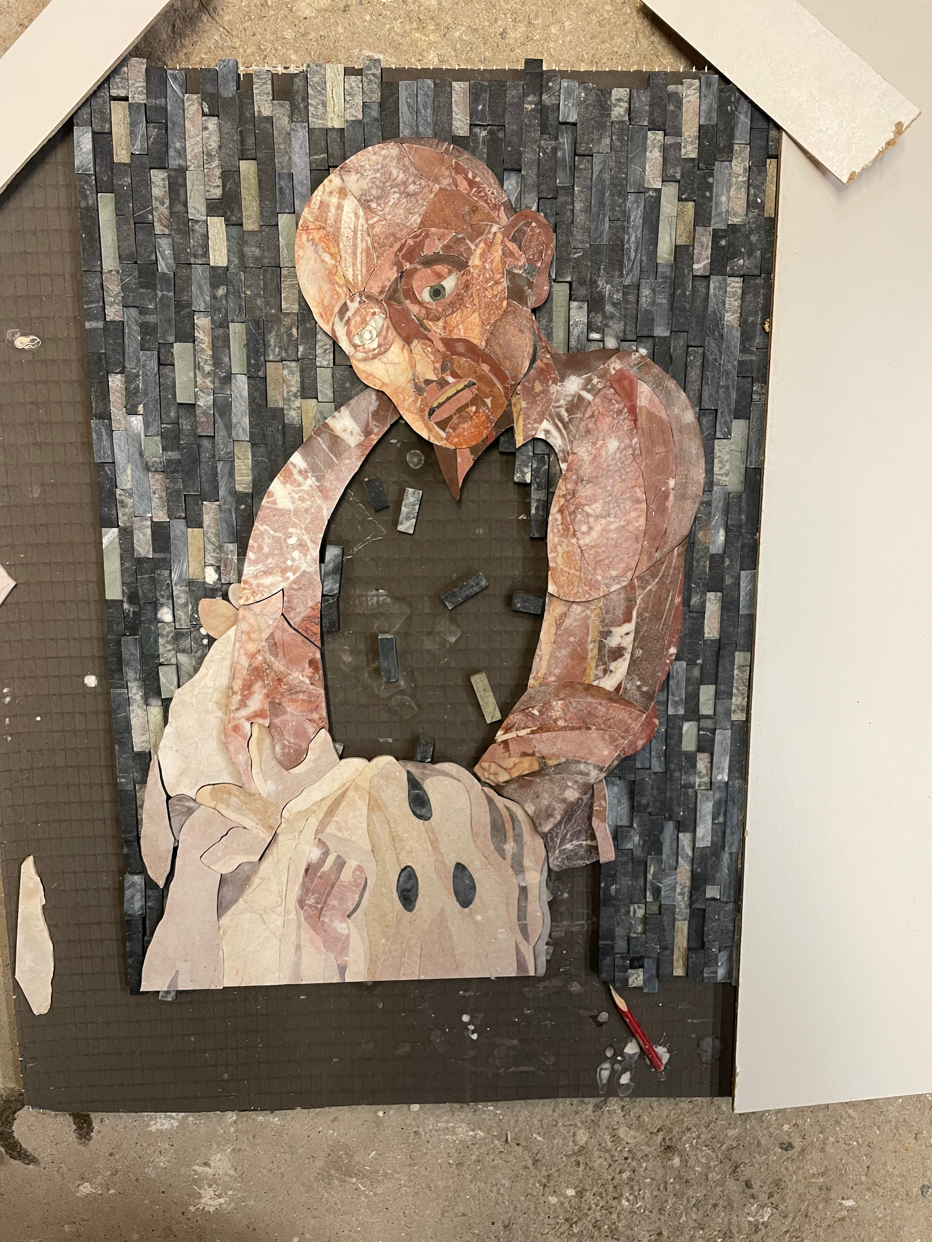 "Bartholomäus"; mostly mesozoic limestones collected in alpine rivers; 41,5 x 56,7 cm, 2023