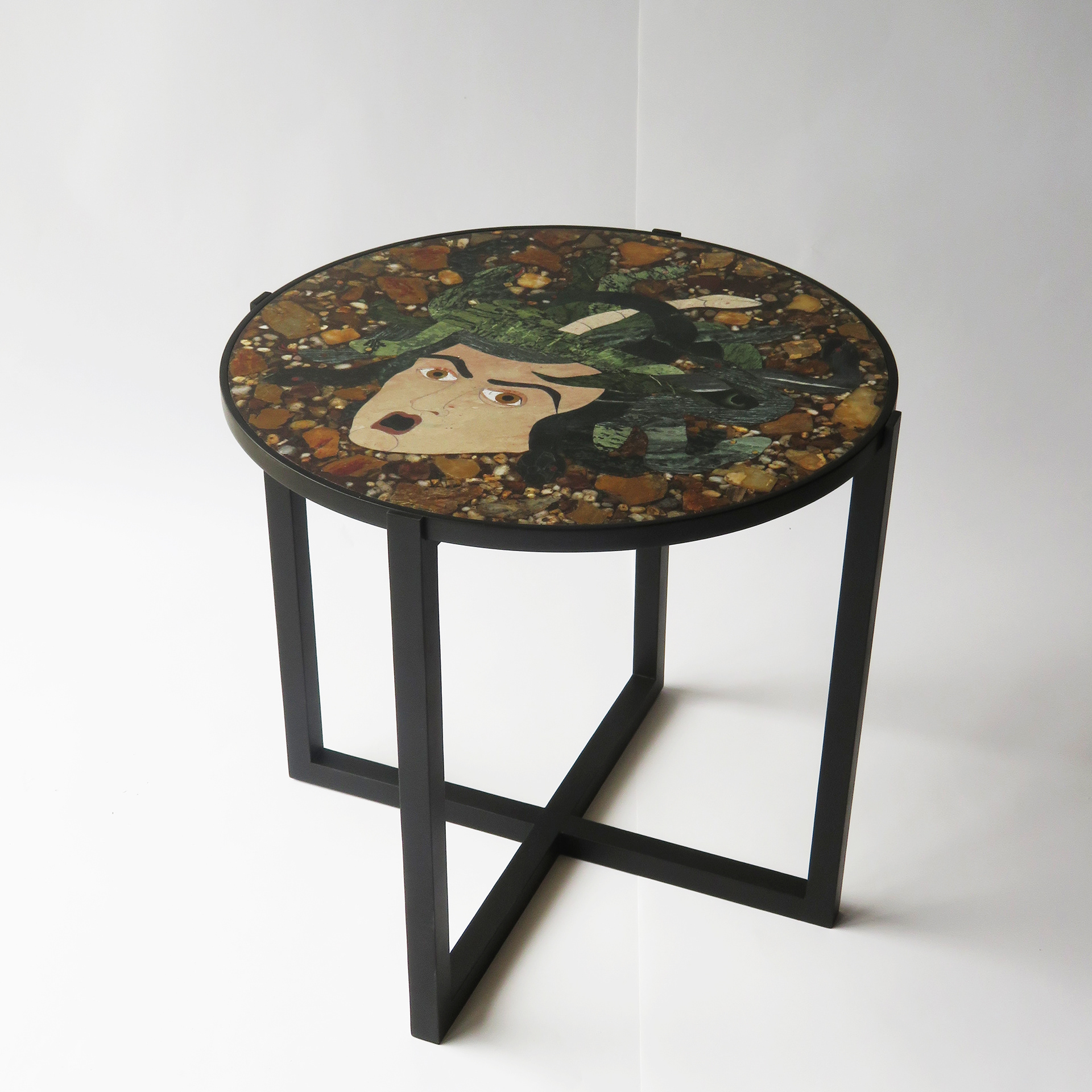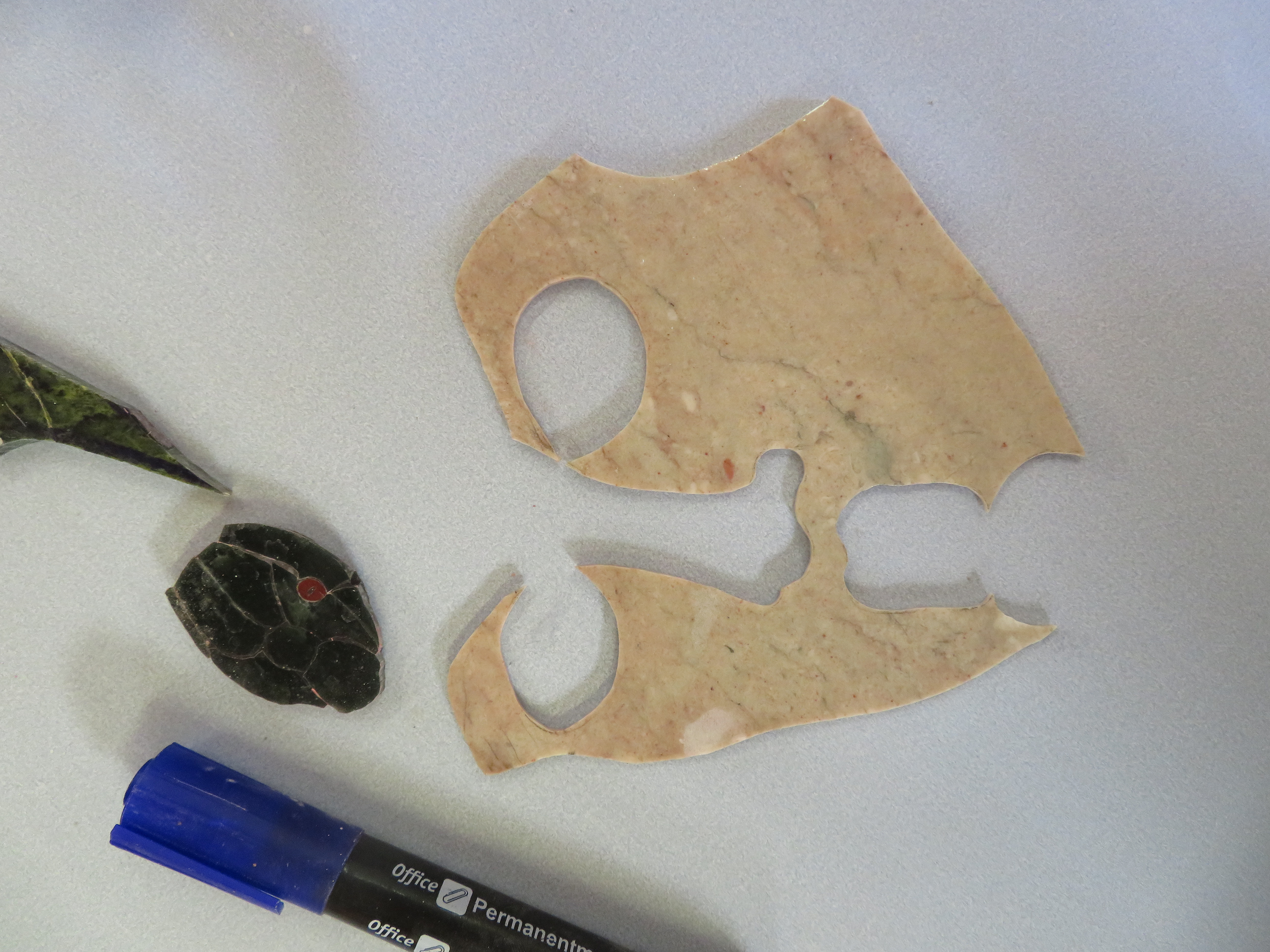 "Medusa"; metabasites, marl, limestone, quartz, wood; 2020