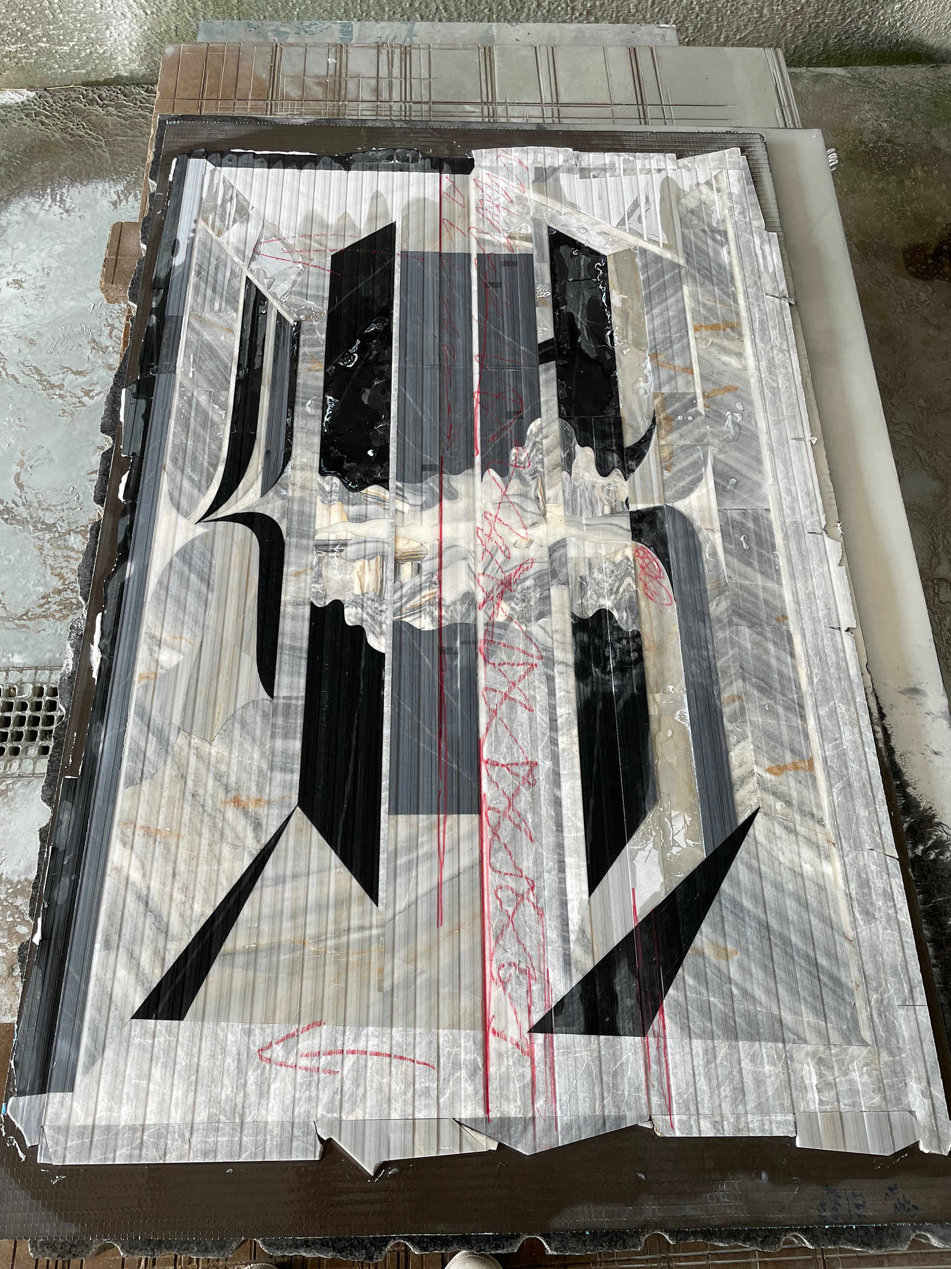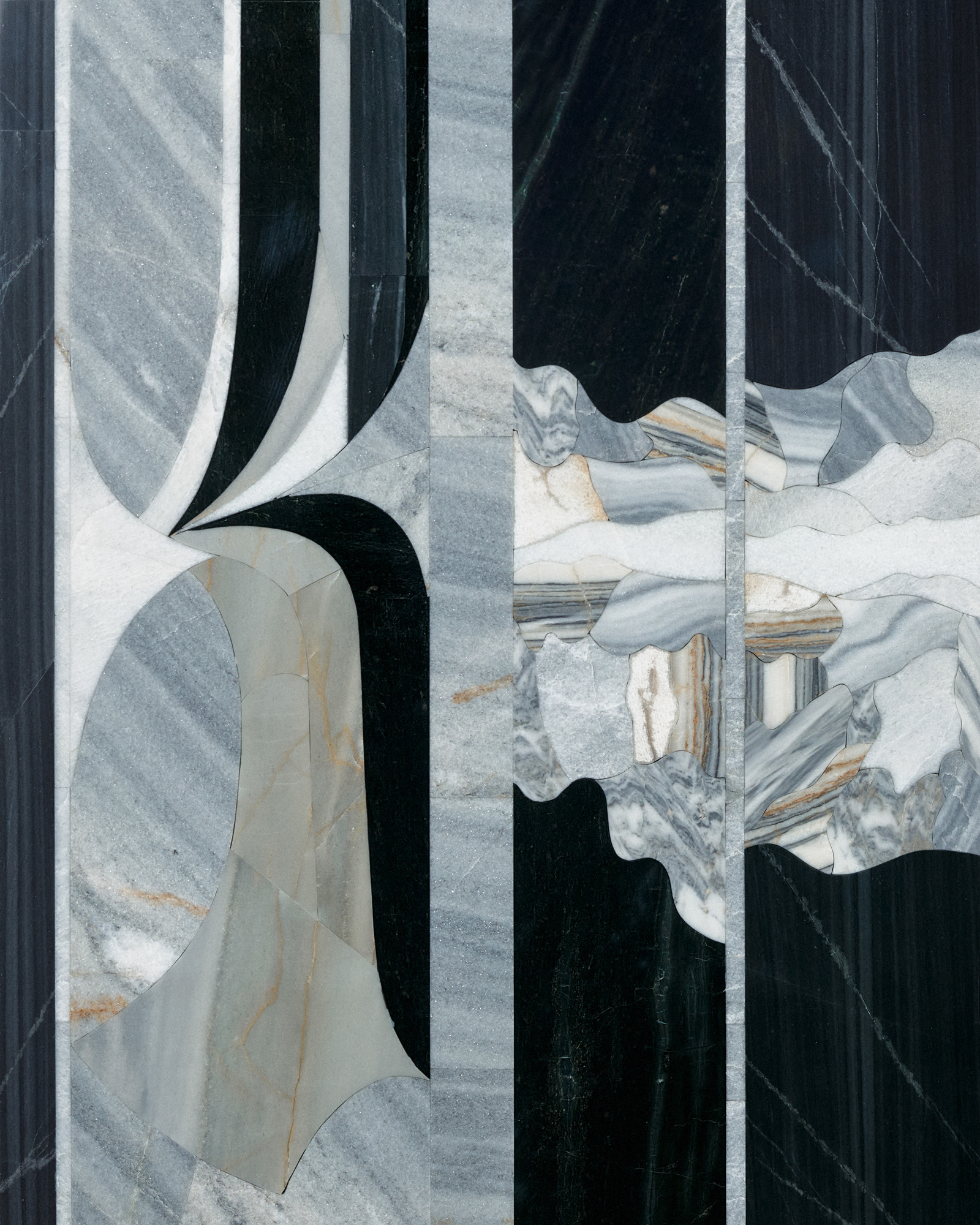 Vika Prokopaviciute & Lukas Janitsch; different stones, epoxy, aluminium; 167 x 109 cm; 2024